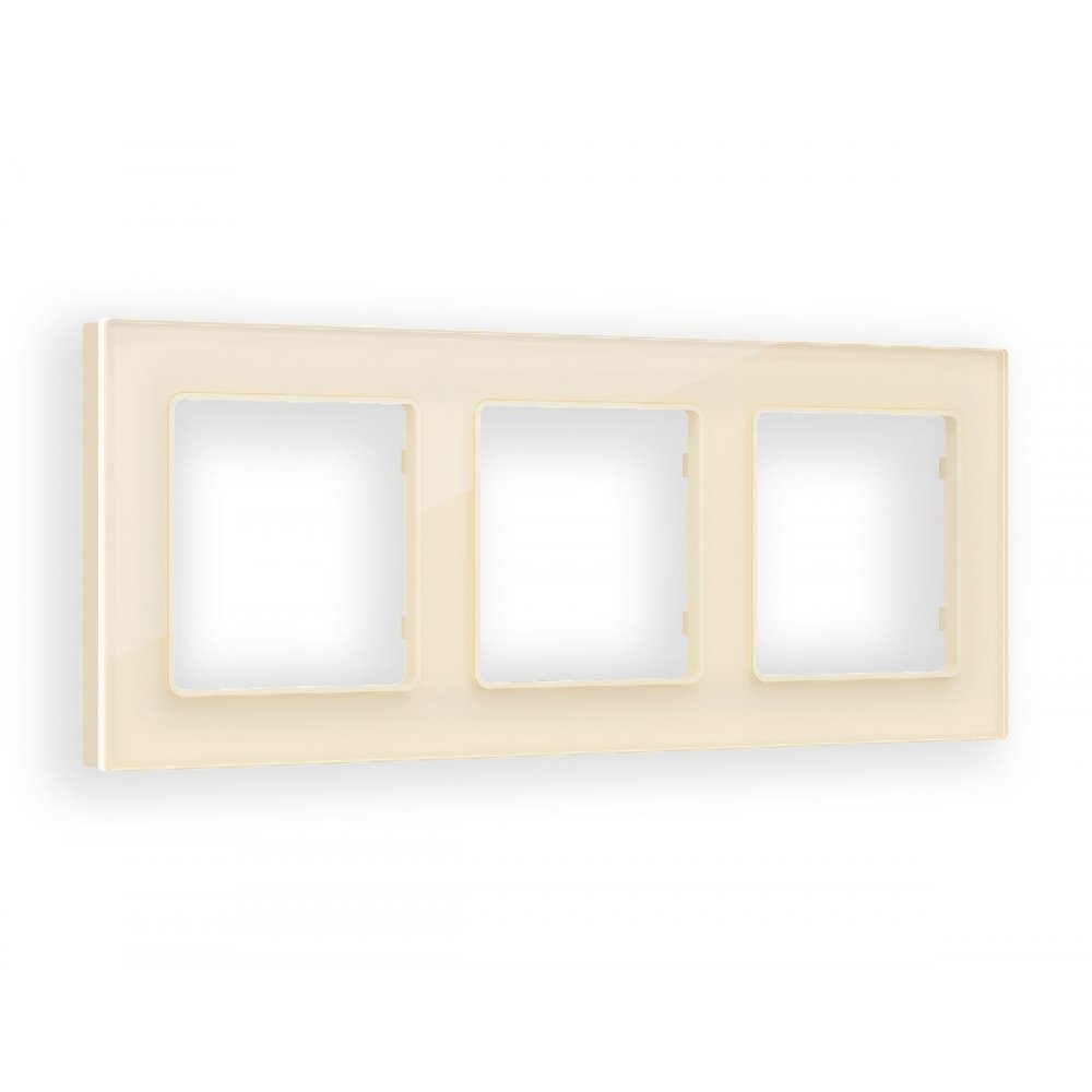 Рамка на 3 поста, бежевый стекло закалённое натуральное «Radian Omega»