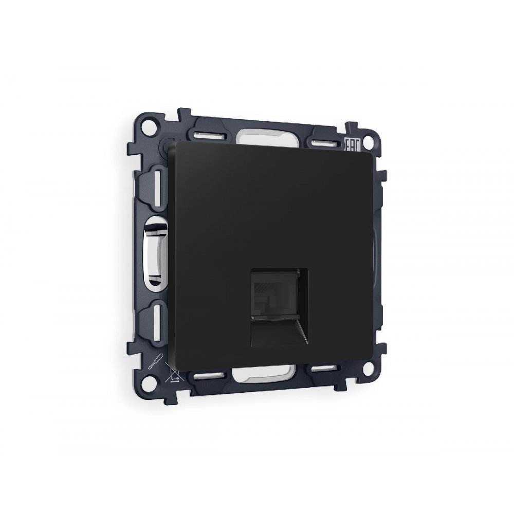 Комплект механизма компьютерной розетки RJ-45(8P8C) CAT6 со шторкой, чёрный матовый «Quant Omega»