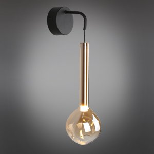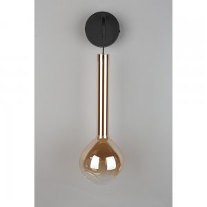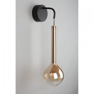 | Внешний вид: | | | Размеры: | высота: 47 см, ширина: 12.5 см, выступ от стены: 19 см, диаметр основания: 10 см | | Материалы: | металл, стекло | | Цвета: | чёрный, янтарный, латунь |
