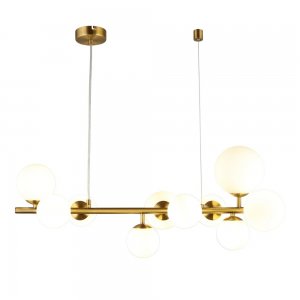 | Внешний вид: | | | Размеры: | высота: 60-130 см, диаметр: 70 см | | Материалы: | металл, стекло | | Цвета: | латунь, белый |