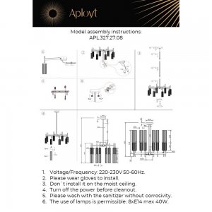| Характеристики |  | | Источник света: | | | Лампа: | 8 шт. с цоколем E14 |