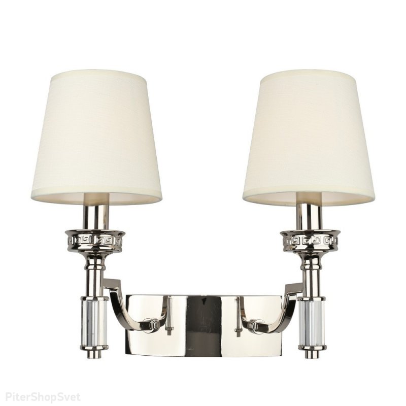 | Внешний вид: | | | Размеры: | высота: 34 см, ширина: 40 см, выступ: 25 см | | Материалы: | металл, текстиль, хрусталь | | Цвета: | хром, молочный, прозрачный |