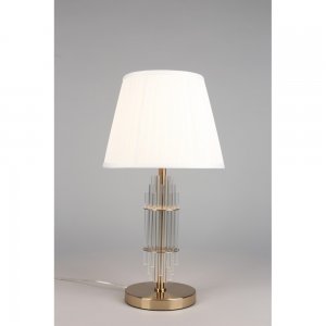| Внешний вид: | | | Размеры: | высота: 55 см, диаметр: 32 см | | Материалы: | металл, текстиль, хрусталь | | Цвета: | золотой, белый, прозрачный |