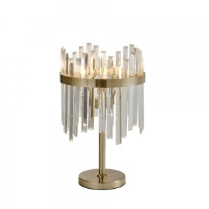 | Внешний вид: | | | Размеры: | высота: 52 см, диаметр: 32 см | | Материалы: | металл, хрустальное стекло | | Цвета: | латунь, прозрачный |