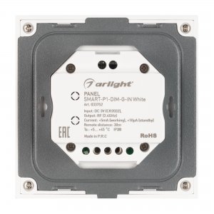 | Описание, дополнительно: | | | Встраиваемая роторная панель 2.4 ГГц, цвет белый. Материал - стекло/пластик. Для управления одноцветными источниками света (ШИМ). Управление яркостью с помощью роторного вращателя. Питание/рабочее напряжение 3VDC от батарейки CR2032. Габариты 86х86х48 мм. Предназначена для установки в стандартный подрозетник. Панель совместима с диммерами серии SMART. |