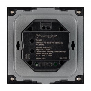 | Описание, дополнительно: | | | Встраиваемая роторная панель 2.4 ГГц, цвет чёрный. Материал - стекло/пластик. Для управления RGB источниками света (ШИМ). Управление яркостью с помощью роторного вращателя. Питание/рабочее напряжение 3VDC от батарейки CR2032. Габариты 86х86х48 мм. Предназначена для установки в стандартный подрозетник. Панель совместима с контроллерами серии SMART. |