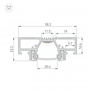 Основная площадка для установки светодиодных лент шириной до 11,5 мм и две дополнительные площадки шириной по 10мм