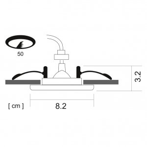 Размеры:диаметр: 8,2 см, высота встр. части без лампы: 3,2 см,высота встр. части с лампой: 6 см,врезное отверстие: 5,8 см