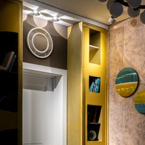 | Характеристики |  | | Внешний вид: Размеры: диаметр: 10 см, выступ от стены: 3 см Материал: алюминий Цвет: бежевый с золотом