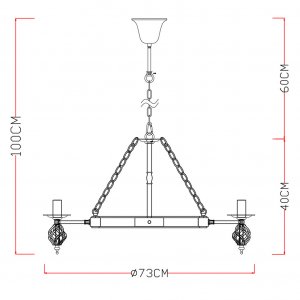 Размеры:высота: 41 см, диаметр: 61 см, цепь: 50 см