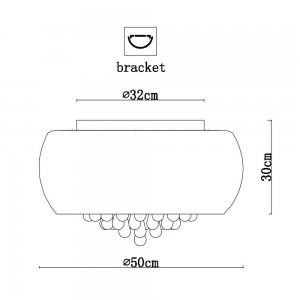 | Характеристики |  | | Внешний вид: Размеры: высота: 30 см, диаметр: 50 см Материал: металл, стекло, хрусталь Цвет: хром, прозрачный