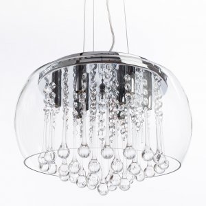 | Характеристики |  | | Внешний вид: Размеры: высота до троса: 22 см, диаметр: 28 см, трос: 70 см Материал: металл, стекло, хрусталь Цвет: хром, прозрачный