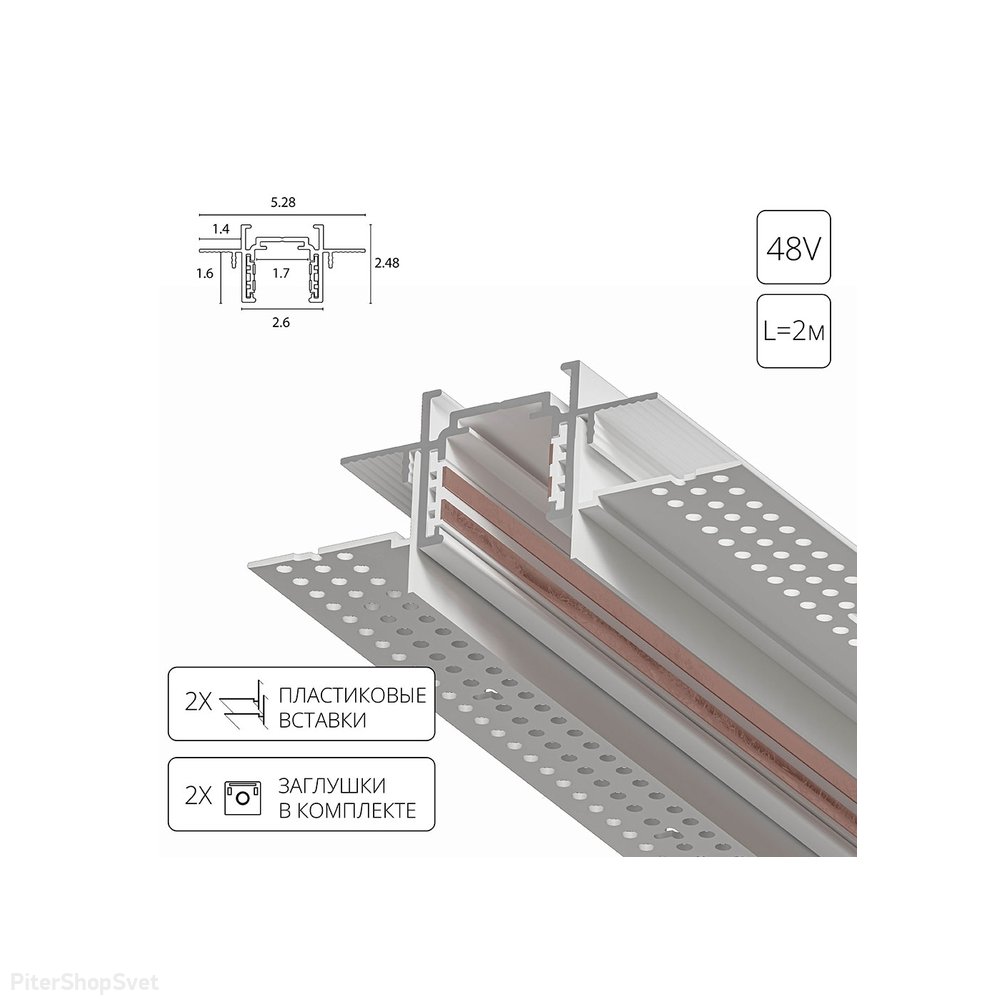 | Характеристики |  | | Общие: | | | Тип системы: | Низковольтная магнитная | | Рабочее напряжение: | 48В | | Монтаж: | Встраиваемый (ГКЛ 12.5мм) | | Класс пылевлагозащиты: | IP20?Подробнее Влагозащита отсутствует |
