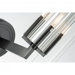 | Внешний вид: | | | Размеры: | высота: 30 см, ширина: 7.5 см, выступ от стены: 18.5 см | | Материалы: | металл латунь, стекло | | Цвета: | чёрный, прозрачный |