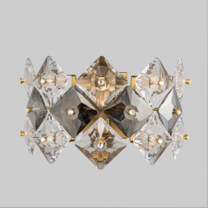 | Внешний вид: | | | Размеры: | высота: 17 см, ширина: 27 см, выступ от стены: 17 см | | Материалы: | металл, хрусталь | | Цвета: | золотой, прозрачный, дымчатый |