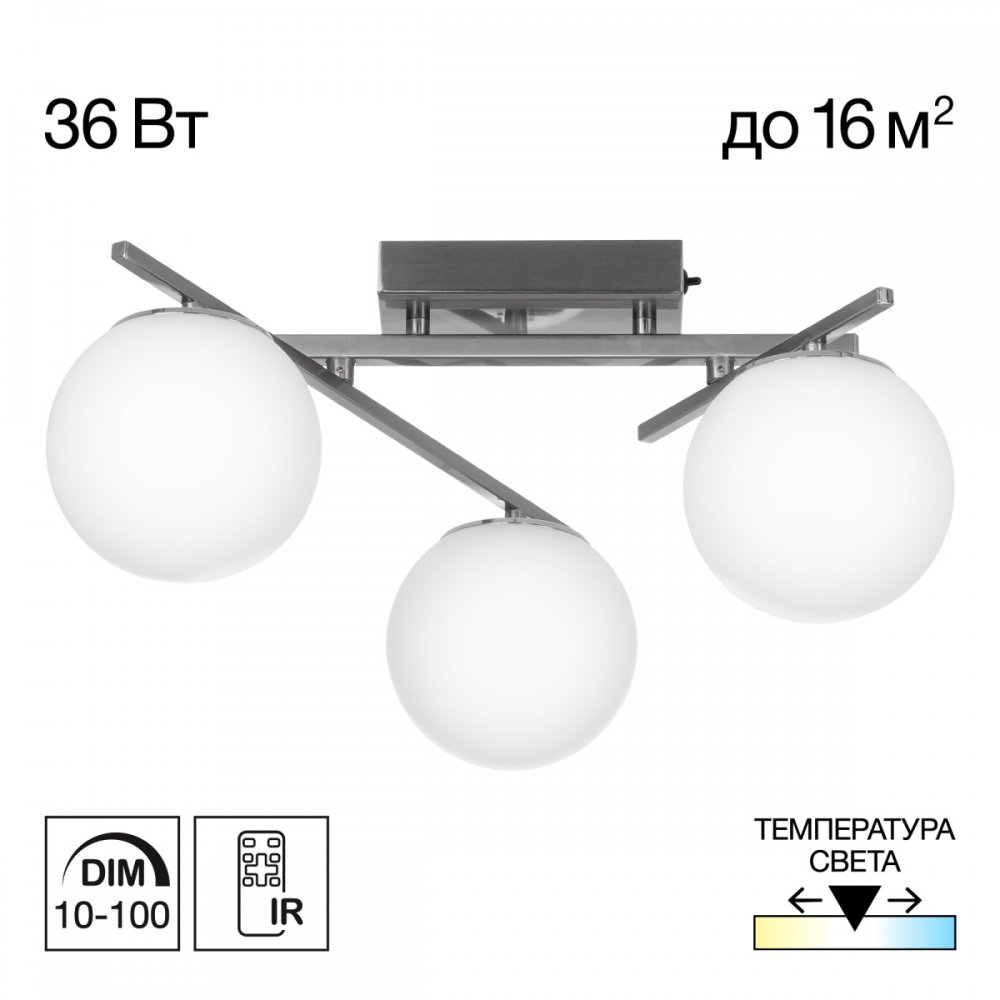 | Дополнительно: | | | Преобразите ваш интерьер с потолочной светодиодной люстрой Citilux CL223131 Dorsy! Гладкое покрытие матовый хром с декоративными хромированными элементами добавит изысканности, а три плафона в форме шаров из матового оптического полимера создадут мягкое и равномерное освещение. Поворотные рожки позволят придать модели различные формы. Благодаря пульту дистанционного управления вы сможете легко регулировать яркость от 10 до 100%, цветовую температуру от 3000 до 5500К, выбирая любые оттенки тёплого, нейтрального и холодного света, создавая идеальную атмосферу для отдыха или работы. Доступно включение основных режимов света обычным настенным выключателем. Инфракрасный пульт ДУ в комплекте. Питание пульта - 2 батарейки формата ААА, напряжением 1,5V (не входят в комплект). |