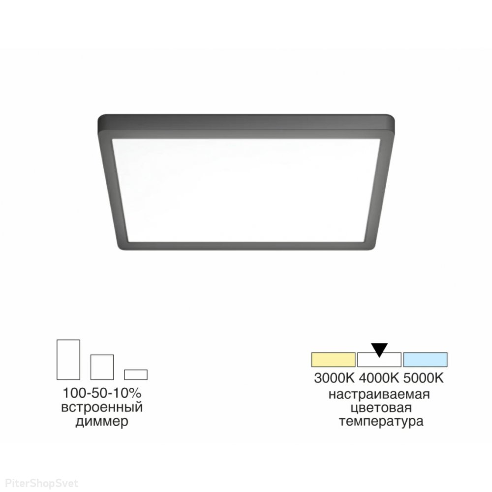 | Дополнительно: | | | обладает высокой энергоэффективностью – 120Лм/Вт, оснащено встроенным 3-х ступенчатым диммером 100-50-10% яркости, управляется настенным выключателем. Модель имеет ступенчатую регулировку цветовой температуры 3000К, 4000К, 5000К. Для этого перед монтажом, на тыльной стороне светильника, переключателем устанавливается выбранный вариант свечения. Свет безопасный для глаз, без мерцания и пульсаций |