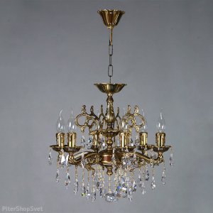 Люстра со свечами и хрустальными подвесками капли «Leon»