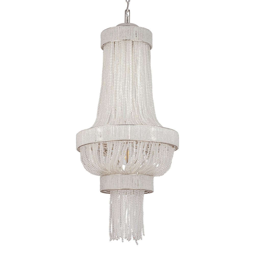 | Внешний вид: | | | Размеры: | высота: 126 см, диаметр: 57 см | | Материалы: | металл, стекло (бисер) | | Цвета: | хром, прозрачный |