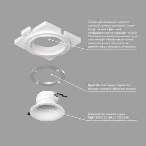 Закладная панель SCB для светильников DK3024. Позволяет добиться эффекта "невидимости" плафона в натяжных потолках за счет утопленного расположения светильника.