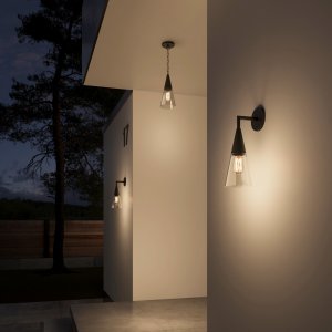 Серия уличных светильников Bevel - это стильное решение для освещения фасадов, террас и входных зон. Лаконичные геометрические формы и матовое черное покрытие придают светильнику современный и минималистичный вид, благодаря чему он идеально подойдет для любого экстерьера. Торшер Bevel подключается к обычной розетке и совмещает в себе функциональность традиционного торшера и высокую степень пылевлагозащиты. Он идеально подойдет для размещения как на террасе или балконе, так и внутри помещения.