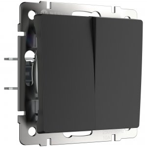 Выключатель двухклавишный проходной с подсветкой (черный матовый)