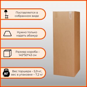 | Внешний вид: | | | Размеры: | высота: 153.5 см, длина: 56.5 см, ширина: 42 см, столик овальной формы – 30*40 см, высота абажура – 31 см, верхний диаметр – 28 см, нижний диаметр – 42 см | | Материалы: | сталь, лдсп, лён | | Цвета: | коричневый венге, шампань, капучино |