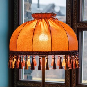 | Внешний вид: | | | Размеры: | высота: 165 см, диаметр: 49 см, диаметр основания: 30 см, верхний диаметр абажура – 18 см | | Материалы: | сталь, лдсп, ткань канвас, тесьма, кисточки, бусины | | Цвета: | коричневый венге, пыльная роза (розовый) |
