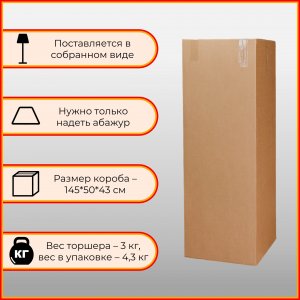 | Внешний вид: | | | Размеры: | высота: 173 см, диаметр: 42 см, диаметр основания: 30 см, ысота абажура — 41 см, верхний диаметр абажура — 18 см | | Материалы: | сталь, лдсп, текстиль лён | | Цвета: | коричневый венге цаво, шампань, капучино |