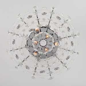 | Характеристики |  | | Внешний вид: Размеры: высота: 36,5 см, диаметр: 60 см, основание: 30 см, планка: 19 см Материал: металл, хрусталь Цвет: хром