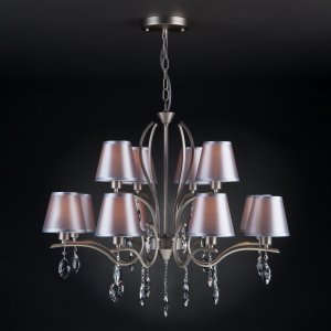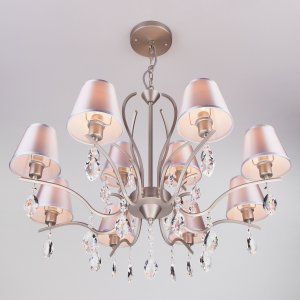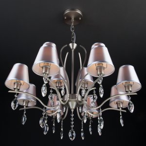 | Характеристики |  | | Внешний вид: Размеры: высота: 62-104 см, диаметр: 70 см Материал: металл, текстиль, хрусталь Strotskis Цвет: сатиновый никель, серый