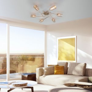 Источник света:Лампы: 6 шт. цоколь E27Площадь освещения: до 18 м² ?ПодробнееПри использовании 11Вт ламп по 915Лм. Источник света расположен на расстоянии до 3м от освещаемой поверхности. Помещение имеет светлые стены и потолок. Эксплуатационные:Защита от пыли и влаги: IP20 ?ПодробнееВлагозащита отсутствует Крепление: На планку | Файлы |  |