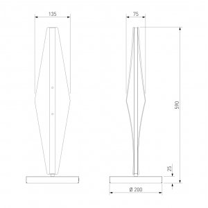 | Внешний вид: | | | Размеры: | высота: 59 см, длина: 13.5 см, ширина: 75.5 см, диаметр основания: 20 см, высота основания: 2 см | | Материалы: | металл, стекло | | Цвета: | чёрный, дымчатый, матовый, латунь |