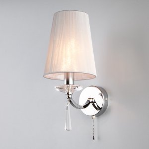 | Внешний вид: | | | Размеры: | высота: 33 см, ширина: 15 см, выступ: 21 см | | Материалы: | металл, текстиль, хрусталь | | Цвета: | хром, серый |