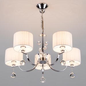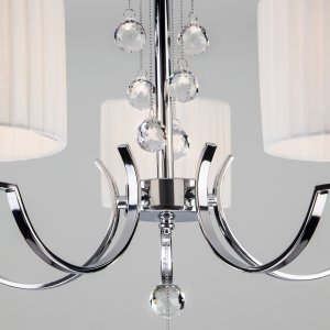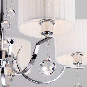 | Внешний вид: | | | Размеры: | высота: 43-89 см, диаметр: 67 см | | Материалы: | металл, текстиль, хрусталь | | Цвета: | хром, белый |