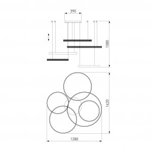 | Внешний вид: | | | Размеры: | высота: 60-110 см, длина: 142 см, ширина: 128 см, кольца: 80, 60, 50 см, основание: 39 см | | Материалы: | металл, акрил | | Цвета: | хром, прозрачный |