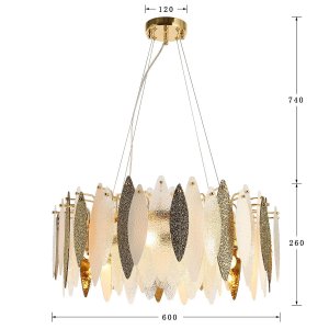 | Внешний вид: | | | Размеры: | высота: 100 см, диаметр: 600 см | | Материалы: | металл, стекло | | Цвета: | золотой, матовый |