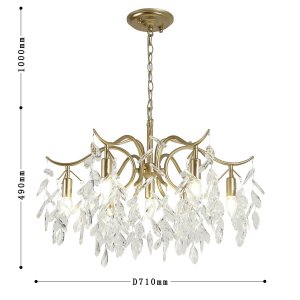 | Внешний вид: | | | Размеры: | высота: 149 см, диаметр: 71 см | | Материалы: | металл, хрусталь | | Цвета: | матовое золото, прозрачный |