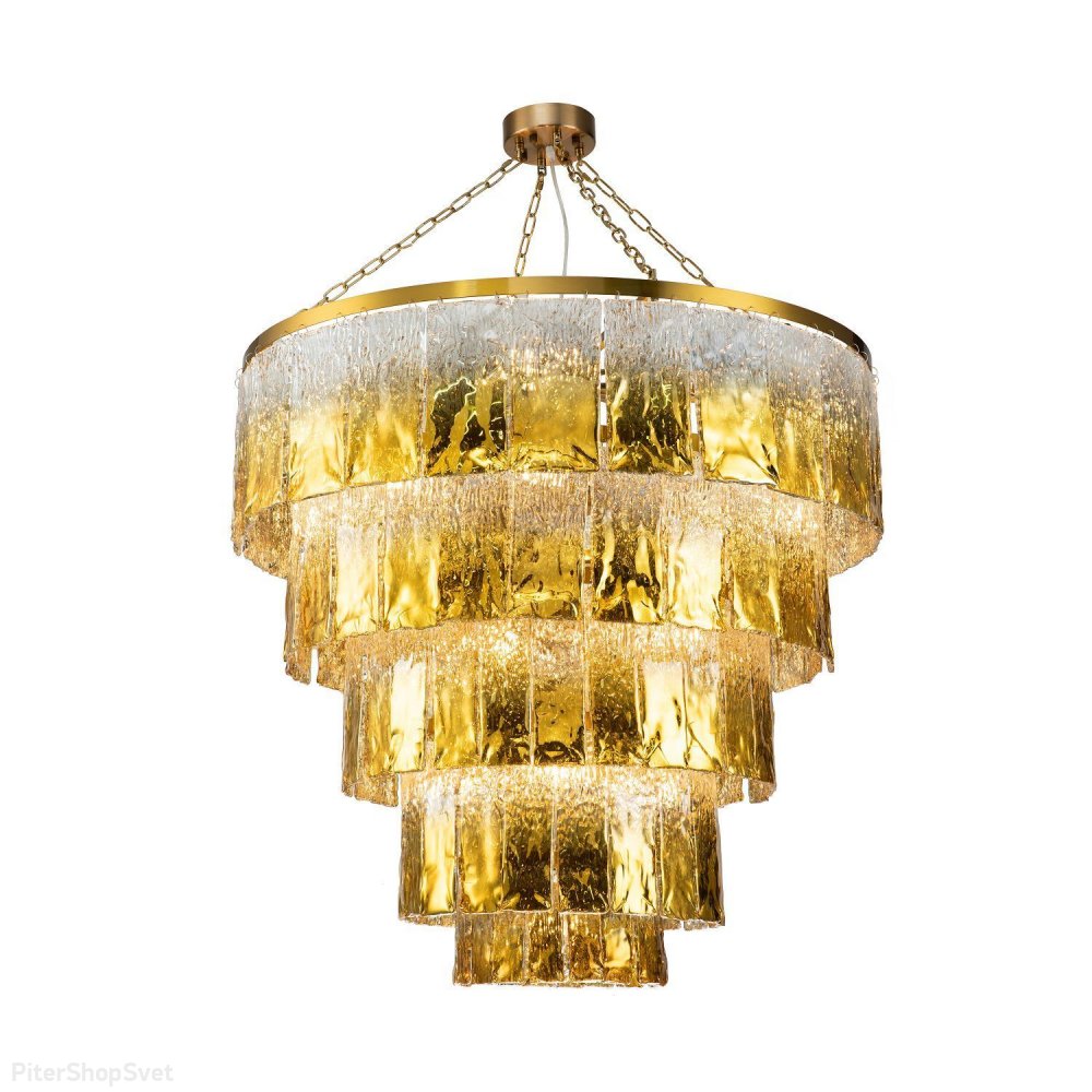 | Внешний вид: | | | Размеры: | высота: 204 см, диаметр: 100 см, диаметр основания: 16 см | | Материалы: | металл, стекло | | Цвета: | золотая латунь, прозрачный с золочением |