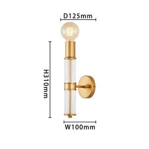 | Внешний вид: | | | Размеры: | высота: 31 см, ширина: 5 см, выступ от стены: 12.5 см, диаметр основания: 10 см | | Материалы: | металл, стекло | | Цвета: | золотой, прозрачный |