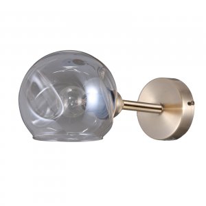 | Внешний вид: | | | Размеры: | высота: 21 см, ширина: 12 см, выступ от стены: 14 см | | Материалы: | металл, стекло | | Цвета: | латунный, тонированный |