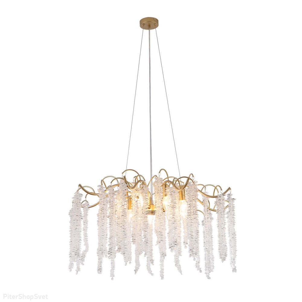 | Внешний вид: | | | Размеры: | высота: 35-120 см, диаметр: 85 см, диаметр основания: 10 см, вес: 9 кг | | Материалы: | металл, хрусталь | | Цвета: | золотой, прозрачный |