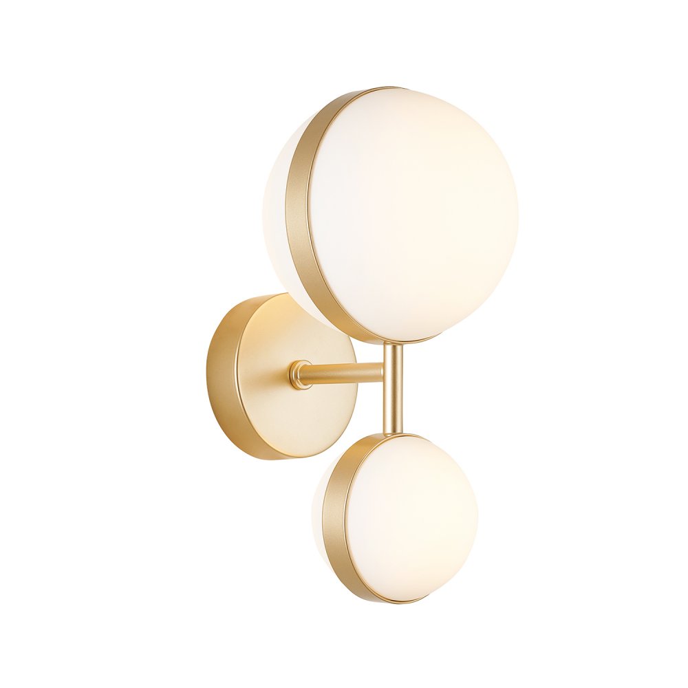 | Внешний вид: | | | Размеры: | высота: 41 см, ширина: 20.5 см, выступ от стены: 25 см, диаметр основания: 14 см | | Материалы: | металл, стекло | | Цвета: | золотой, белый |