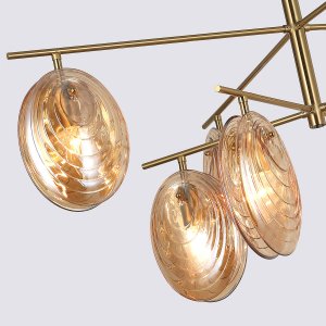 | Внешний вид: | | | Размеры: | высота: 68.6 см, диаметр: 90 см, вес: 7.2 кг | | Материалы: | металл, стекло | | Цвета: | латунный, янтарный |