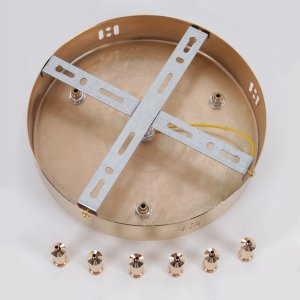| Характеристики |  | | Внешний вид: | | | Размеры: | высота: 4 см, диаметр: 22 см | | Материалы: | металл | | Цвета: | золотой глянцевый |