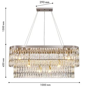 | Внешний вид: | | | Размеры: | высота: 60-195 см, длина: 100 см, ширина: 29 см, основание: 25х10 см | | Материалы: | металл, хрусталь | | Цвета: | никель, прозрачный |