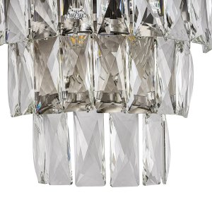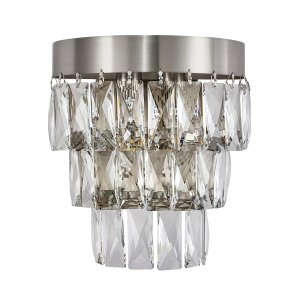 | Внешний вид: | | | Размеры: | высота: 26 см, ширина: 23 см, выступ от стены: 14 см | | Материалы: | металл, хрусталь | | Цвета: | никель, прозрачный |