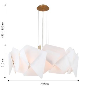 | Внешний вид: | | | Размеры: | высота: 45-185 см, диаметр: 77 см, диаметр основания: 10 см | | Материалы: | металл, акрил | | Цвета: | латунь, белый |