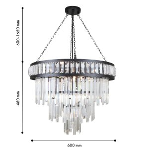 | Внешний вид: | | | Размеры: | высота: 60-165 см, диаметр: 60 см | | Материалы: | металл, хрусталь | | Цвета: | чёрный, прозрачный |