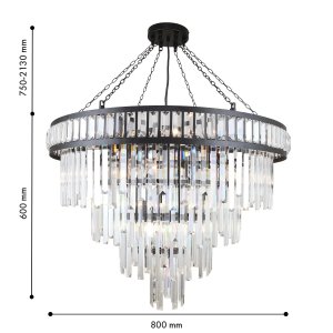 | Внешний вид: | | | Размеры: | высота: 75-213 см, диаметр: 80 см | | Материалы: | металл, хрусталь | | Цвета: | чёрный, прозрачный |